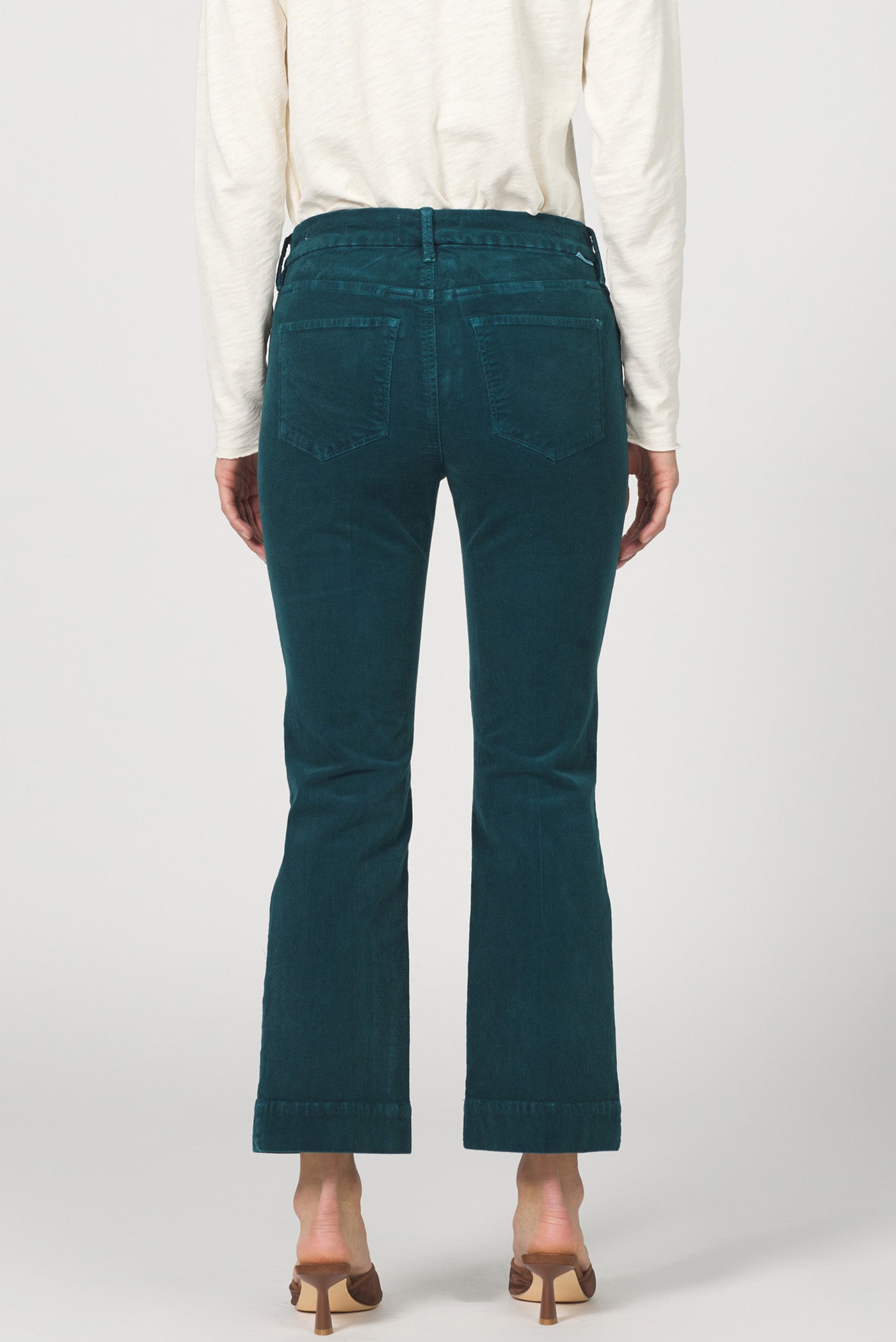 Step into effortless style with these rich teal corduroy jeans, designed in a flattering mid-rise fit with a subtle cropped flare leg. Crafted from soft stretch corduroy, they offer both comfort and sophistication, making them a versatile choice for cooler seasons. Pair them with a cozy knit or sleek blouse to elevate your everyday look.