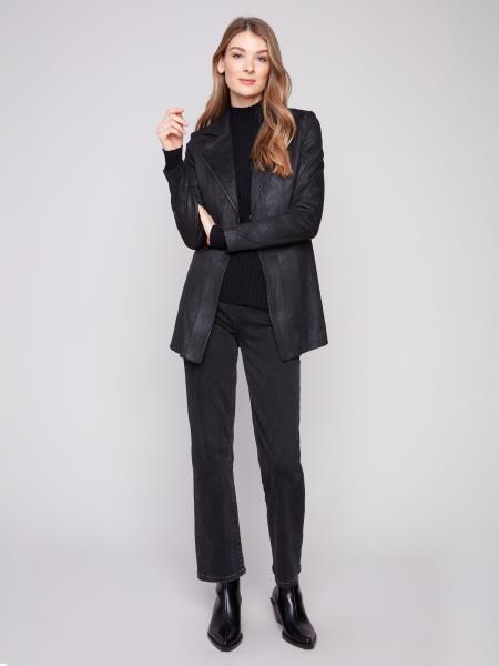 Elevate your look with this sleek faux leather blazer, a modern layering piece that brings instant polish to any outfit. Designed with a tailored silhouette, it features clean lines, a single-breasted front, and a smooth finish that exudes sophistication. Pair it with denim for a chic casual vibe, or dress it up over trousers for a sharp, office-ready style. A versatile must-have that transitions seamlessly from day to night.