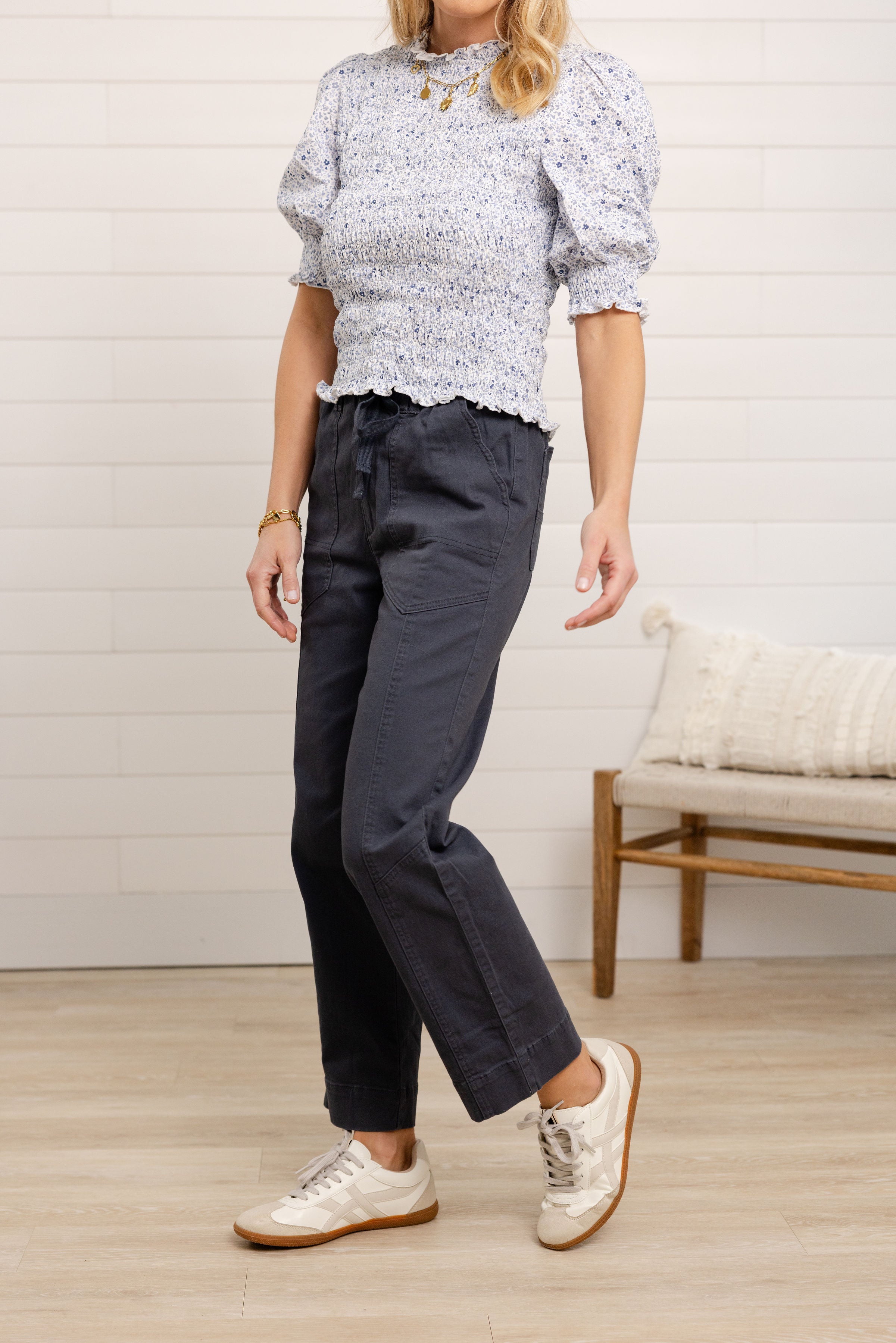 The Mac and Me Ultra Skyrise Paper Bag Straight Leg is a standout from our exclusive Mac and Me line — thoughtfully designed to blend structure, comfort, and style. Crafted in the rich Orion wash (a deep slate gray-blue), this pair feels like the perfect mix of tailored trouser and effortless utility pant. The ultra skyrise paper-bag waist with drawstring creates a flattering, cinched silhouette, while the front seam elongates the leg. Finished with scalloped pocket details, it’s all about subtle design that makes a big impact.