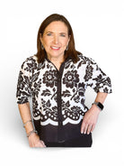 This elegant black-and-ivory floral top blends classic charm with everyday sophistication. Designed with a button-front silhouette and three-quarter sleeves, it offers a polished look that’s easy to dress up or down. The bold floral pattern adds visual interest while the contrasting trim creates a flattering, structured finish. Lightweight and comfortable, this top pairs beautifully with tailored pants, denim, or skirts—making it a versatile staple for workdays, dinners, or casual outings.