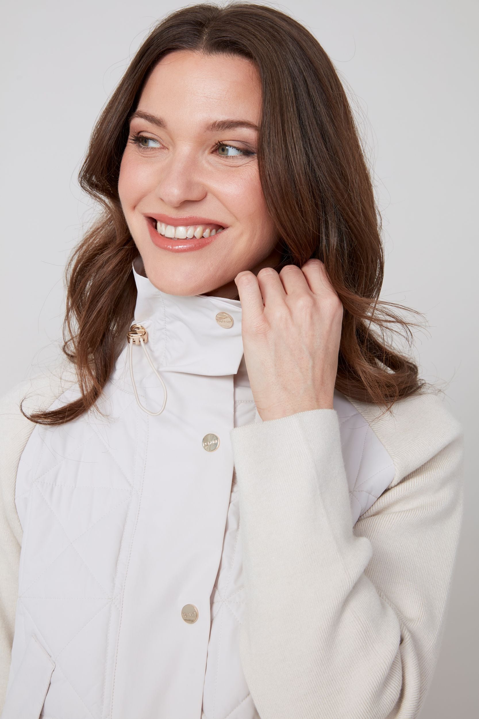 Elevate your everyday style with this chic quilted vest in a soft oyster hue. Designed with a diamond-stitched front, snap-button closures, and roomy front pockets, it combines timeless polish with modern practicality. The lightweight insulation makes it the perfect layering piece—whether paired with a crisp blouse and trousers for a refined look or styled casually over a knit for weekend outings.