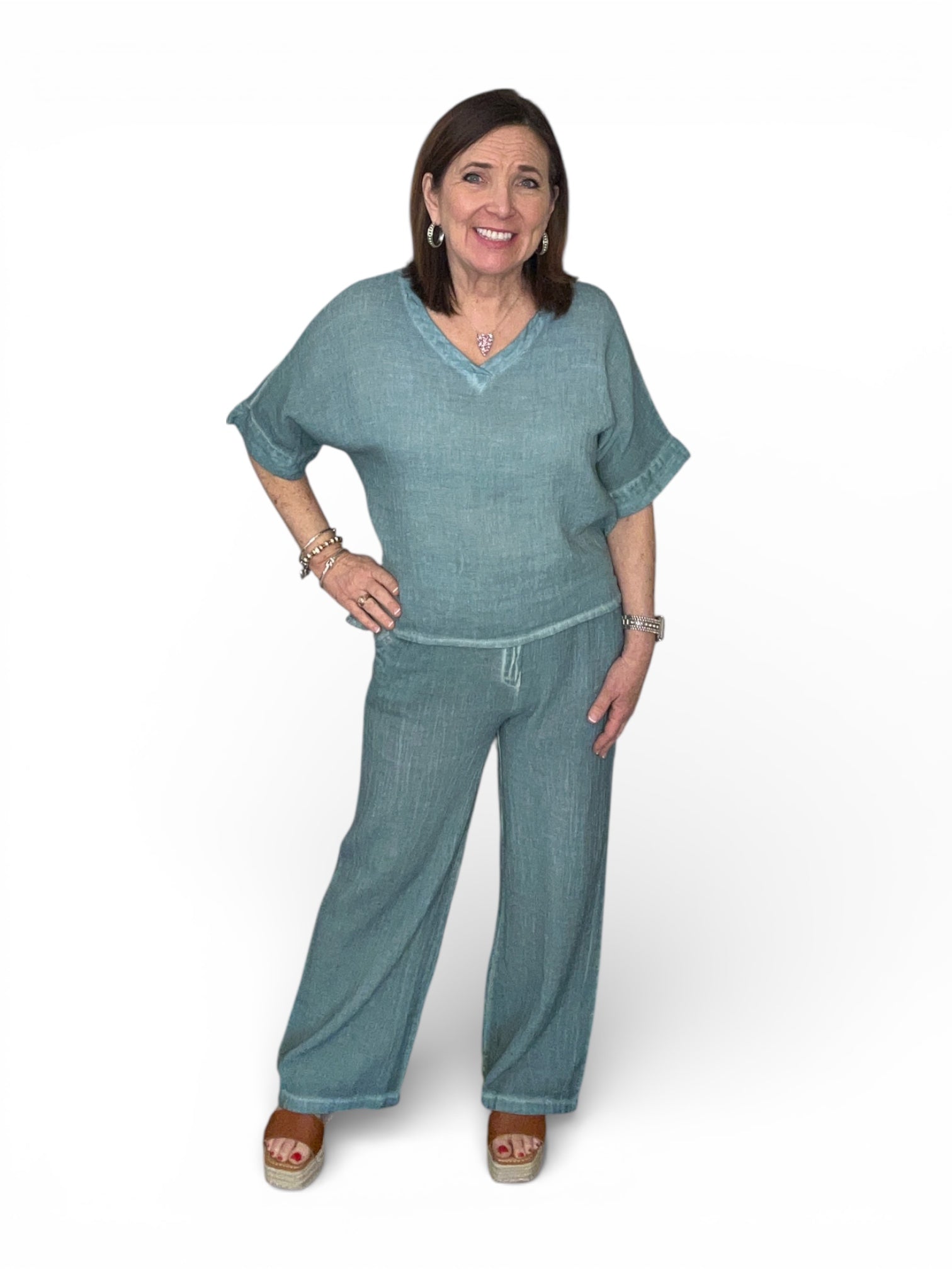 V Neck Linen Top