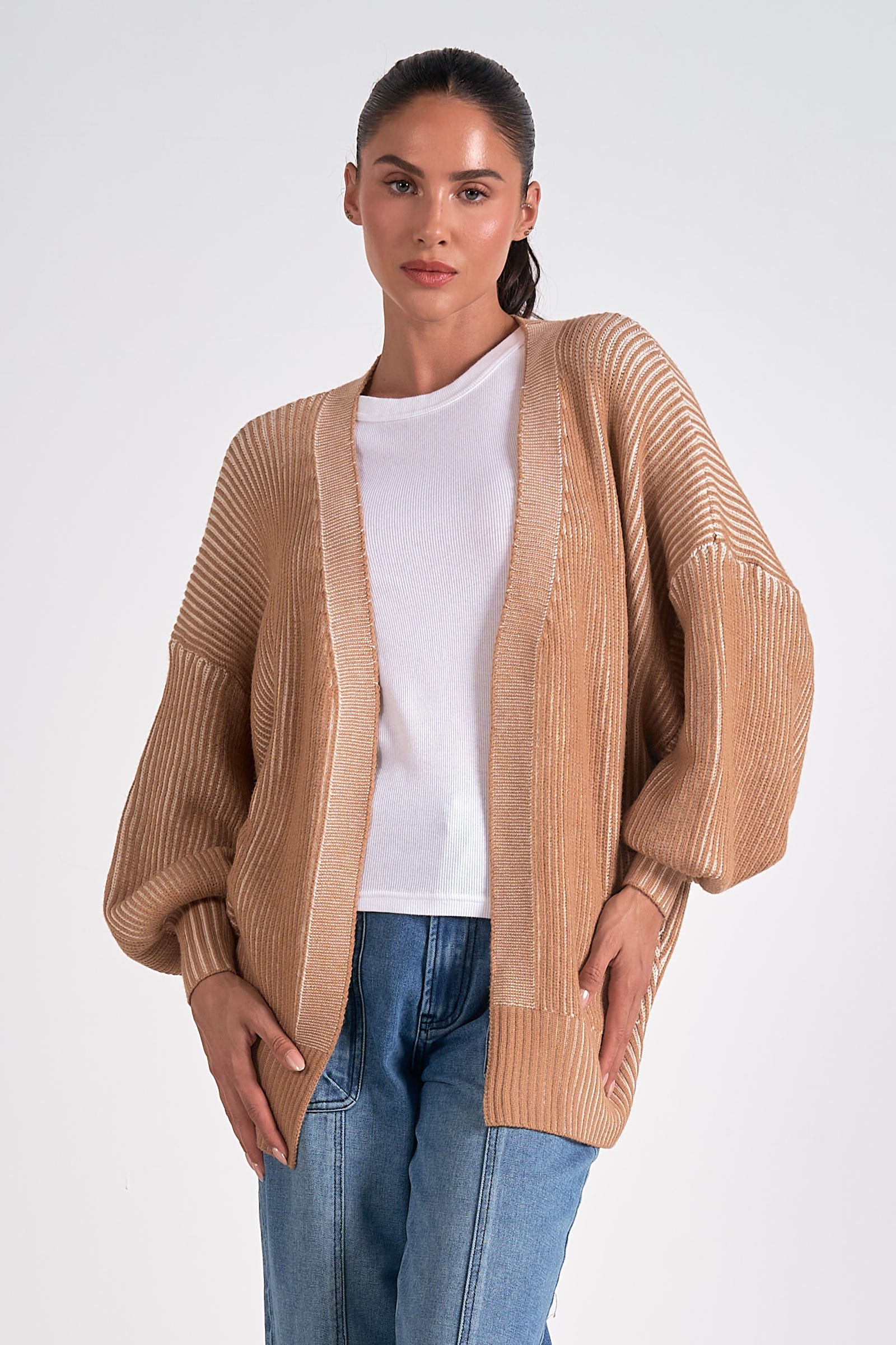 Sweater Cardigan-Tan/Wht