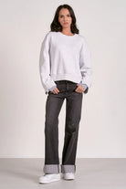 This top is a mixed media everyday essential. With long sleeves, subtle stripe accents, and a mix of knit and woven textures, this piece delivers structure and softness in equal measure. It’s the ultimate layering hero — wear it under coats or solo for an effortless, polished look.  Knit: 100% Cotton Woven: 70% Cotton 27% Polyaide 3% Elastane