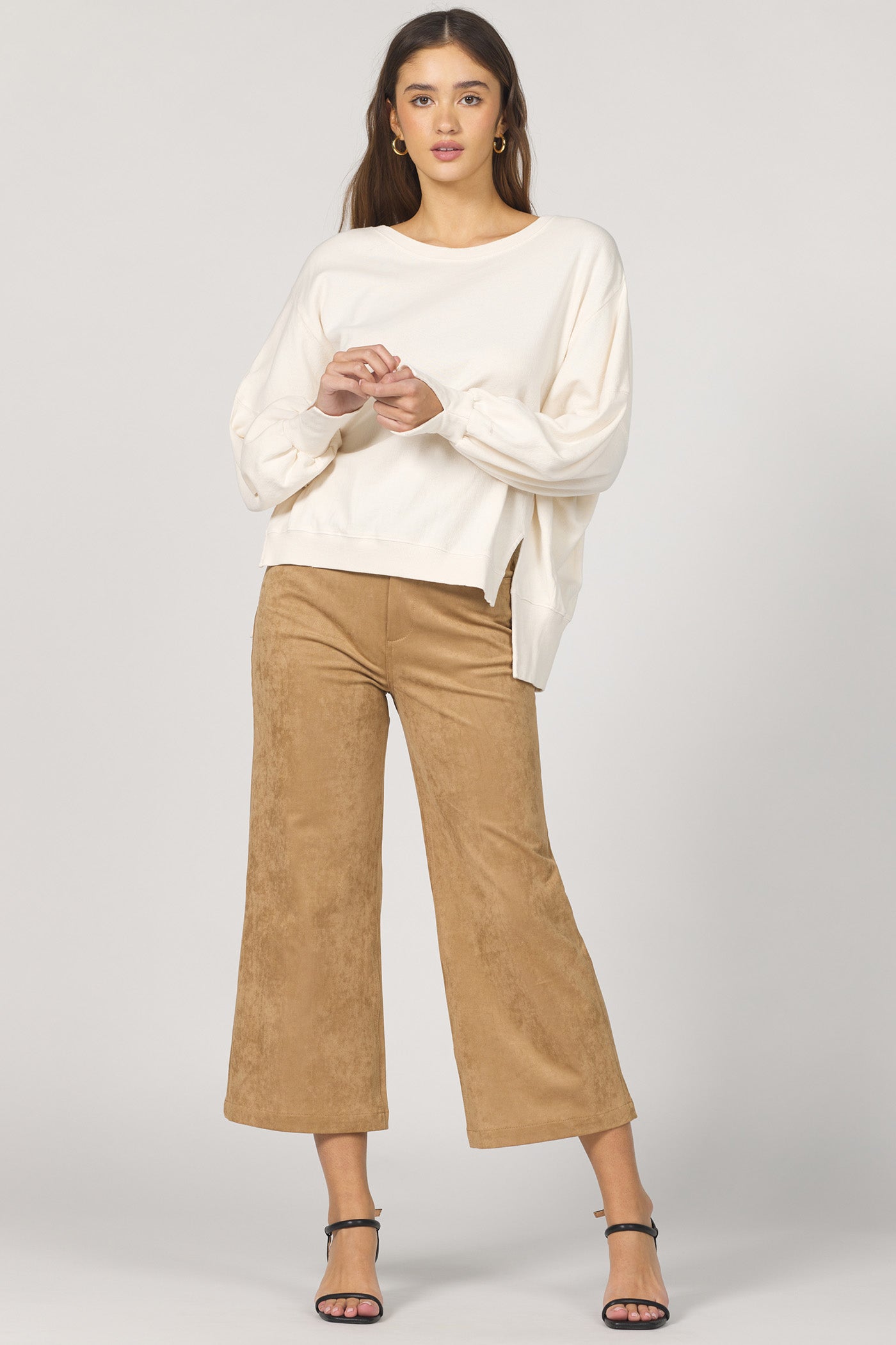 Relaxing in your Trenton crew neck long sleeve sweater. This chic top boasts an oversized fit, ensuring breathability and ease of movement, perfect for those seeking stylish yet comfortable clothing with versatility. Its timeless crew neck design pairs effortlessly with any outfit, making it a constant wardrobe staple as this top adapts seamlessly to your lifestyle. 100% Cotton